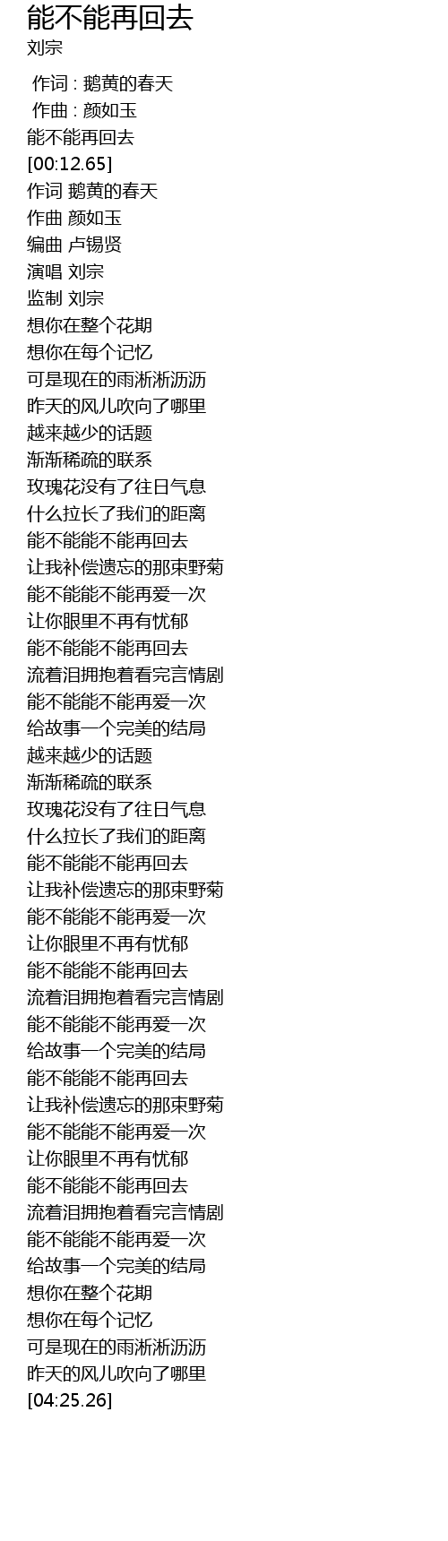 | [03:20.37] | 能不能能不能再回去 |