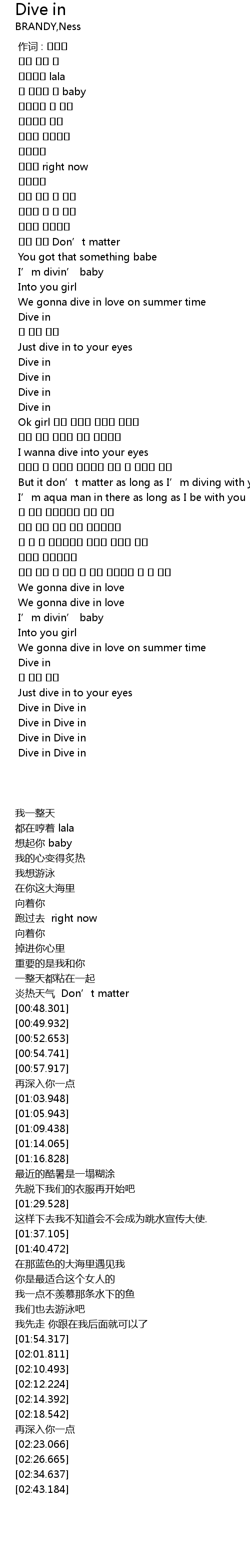 | [02:43.184] | Dive in Dive in |