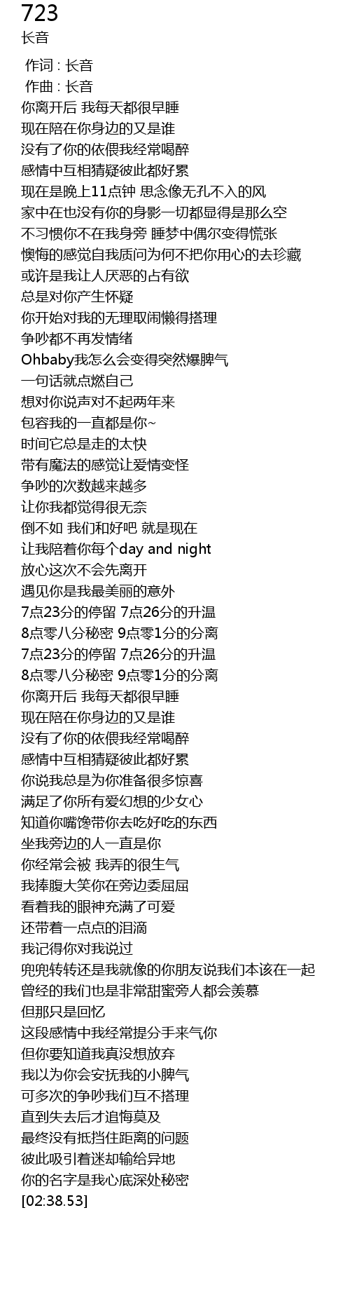 | [01:38.72] | 你离开后 我每天都很早睡 |