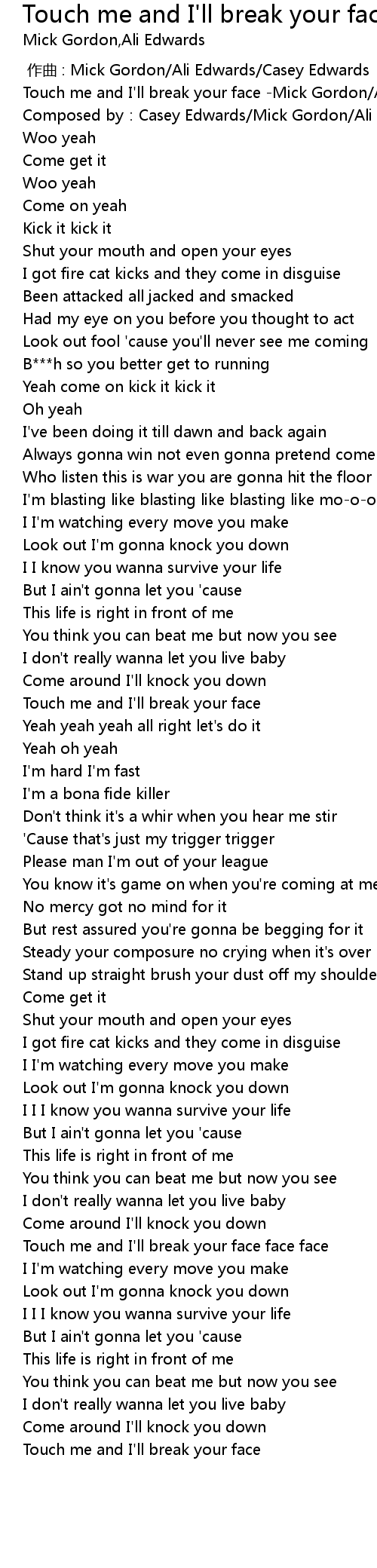 | [02:59.808] | Touch me and I' ll break your face face face |