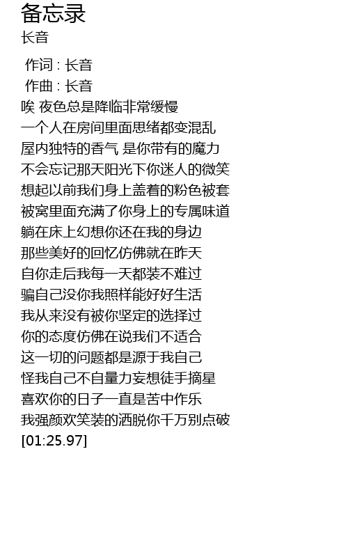 | [00:01.000] | 作曲 : 长音 |