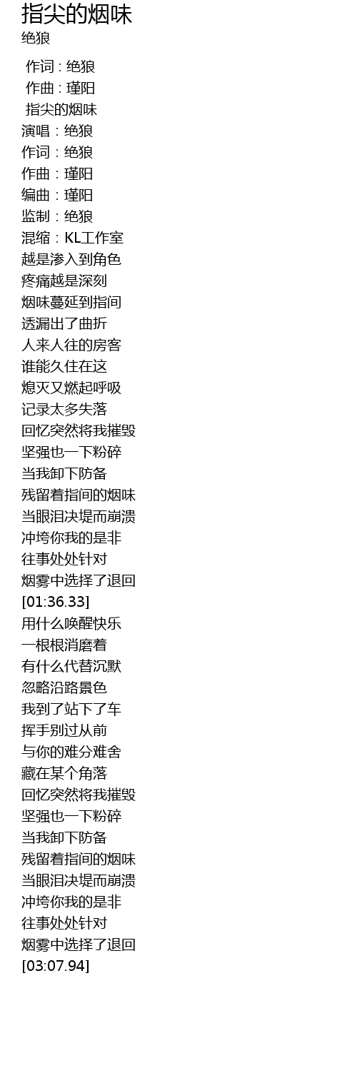 | [00:01.21] | zhǐ jiān de yān wèi |