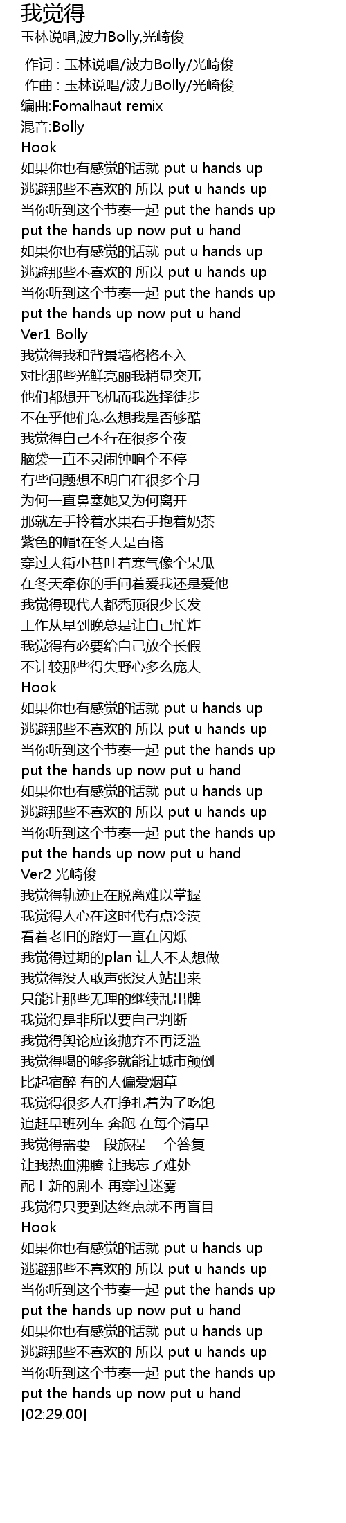 | [02:16.25] | 如果你也有感觉的话就 put u hands up |