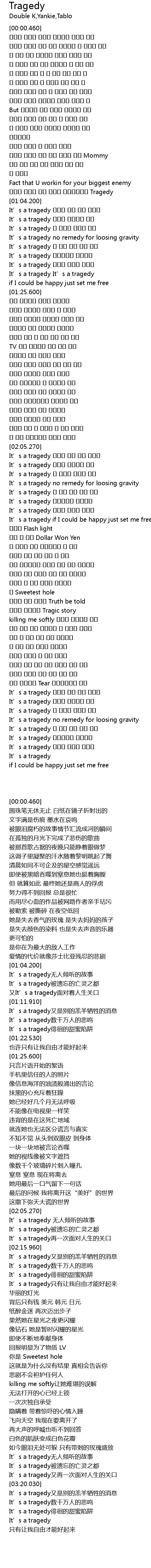 | [01:09.290] | It’s a tragedy 또 닥치는 인생에 고비 |