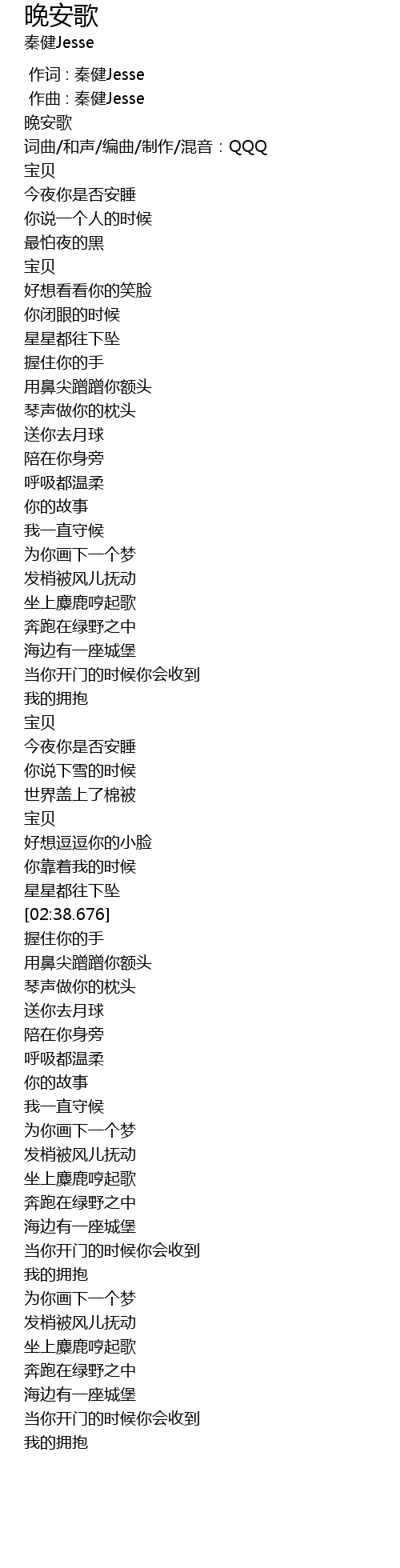 | [00:16.622] | 词曲/和声/编曲/制作/混音:QQQ |