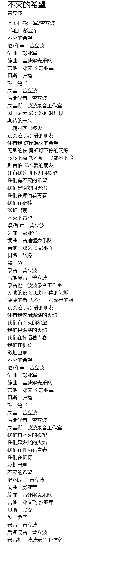 | [03:19.506] | 唱/和声:曾立波 |