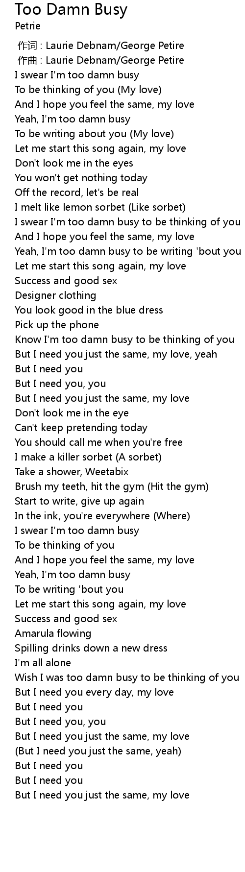 | [00:30.154] | I swear I'm too damn busy to be thinking of you |