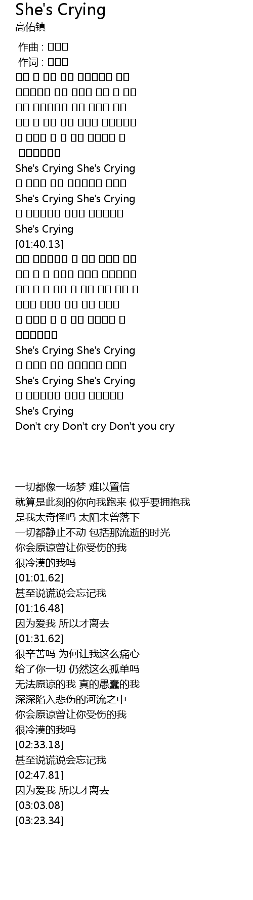 | [03:03.08] | She' s Crying |