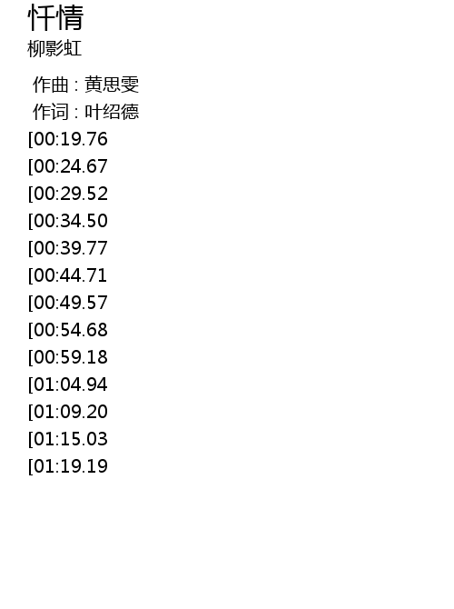 | [01:30.31][00:19.76] | 情比轻烟 爱似浮云 |