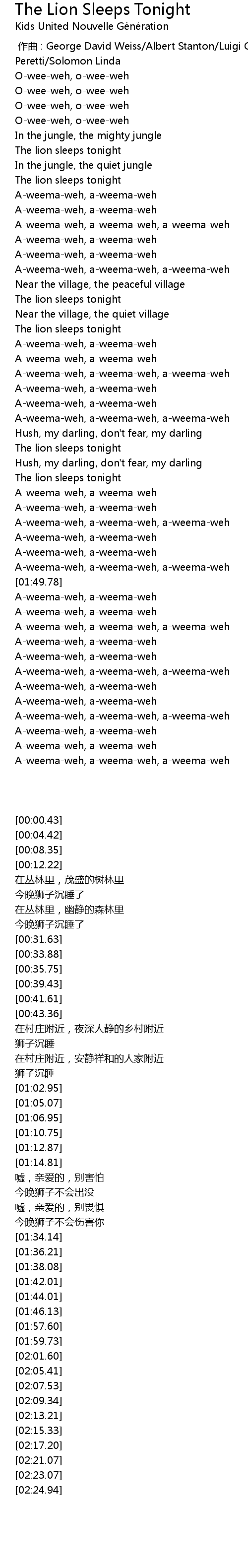| [00:58.90] | The lion sleeps tonight |