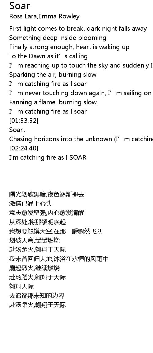 | [02:33.71] | I' m catching fire as I SOAR. |