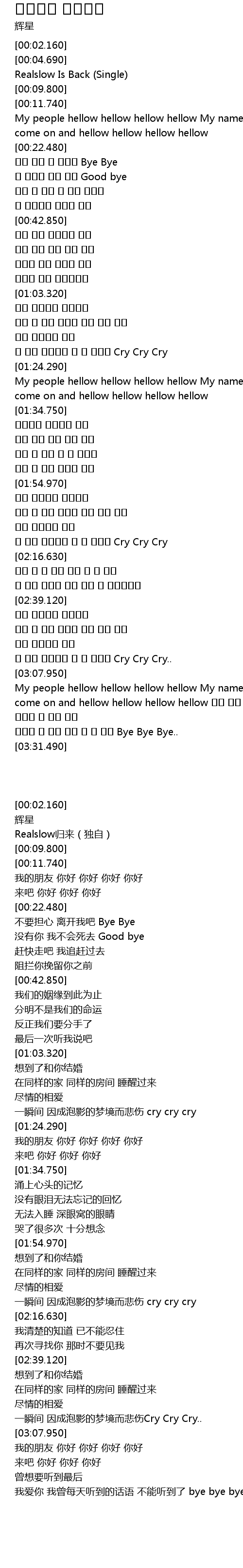 | [00:12.540] | My people hellow hellow hellow hellow My name is RealSlow |
