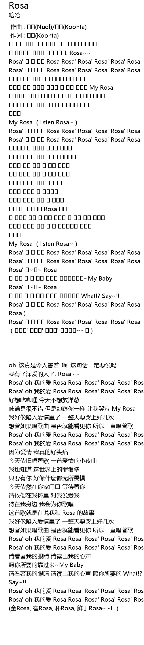 | [02:27.759] | Rosa' 오 내 사랑 Rosa Rosa' Rosa' Rosa' Rosa' Rosa |