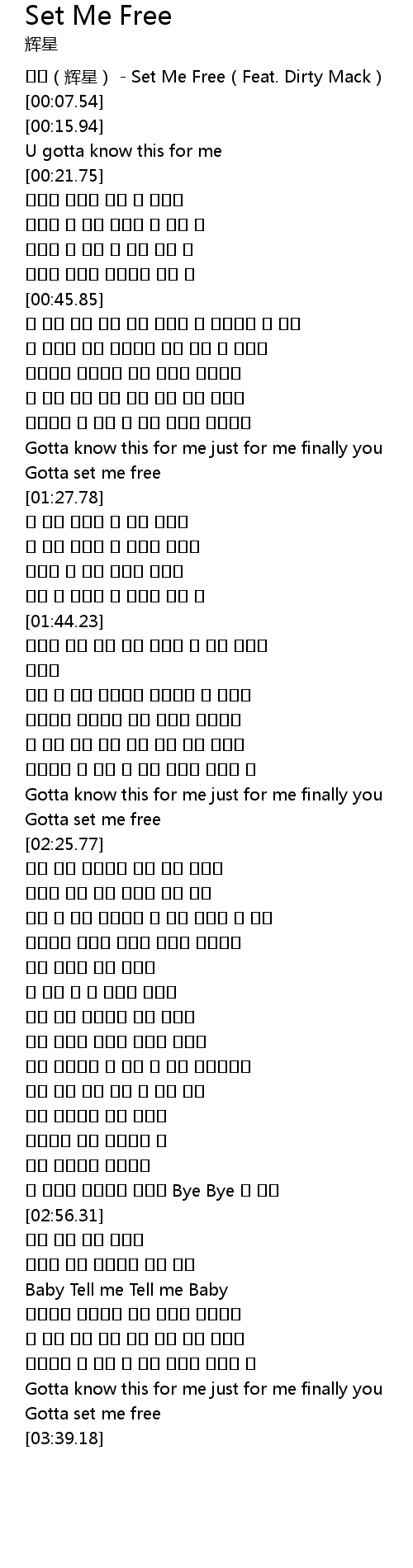 | [00:00.46] | 휘성(辉星) - Set Me Free(Feat. Dirty Mack) |