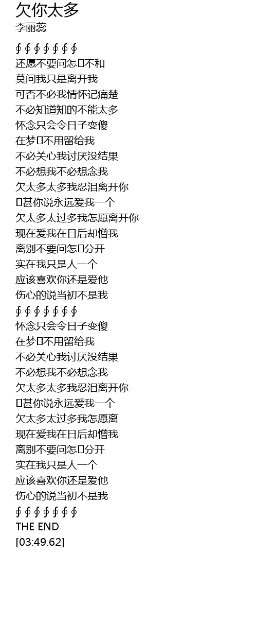 | [02:40.61] | 欠太多太多我忍泪离开你 |