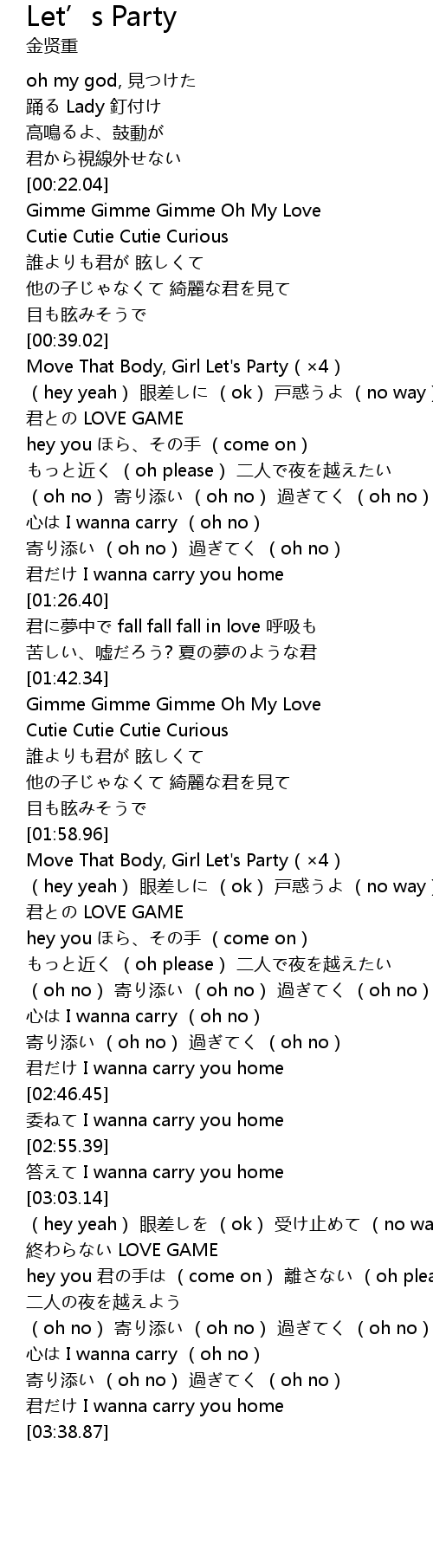 | [00:39.34] | Move That Body, Girl Let's Party(×4) |