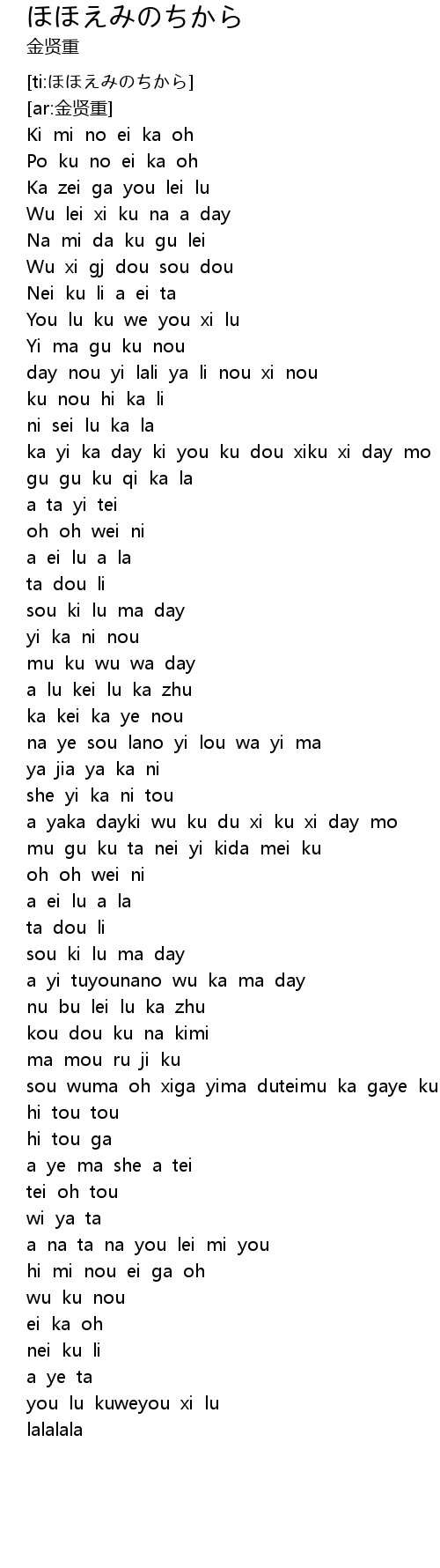 | [00:48.26] | ka yi ka day ki you ku dou xiku xi day mo |