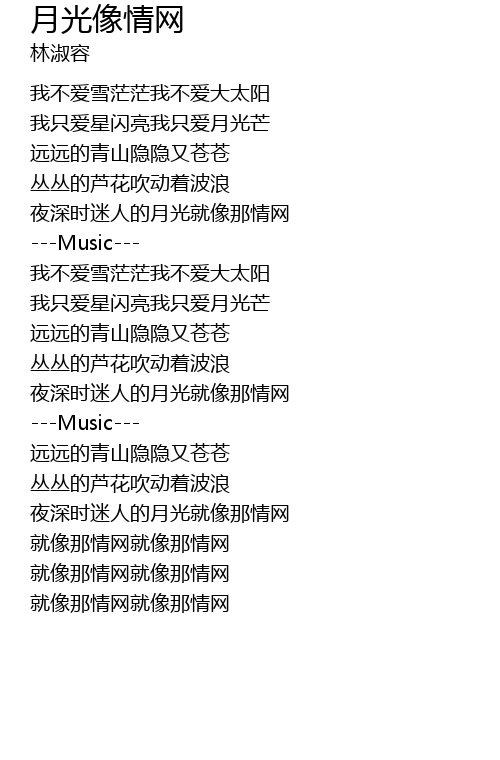 | [01:35.40] | 夜深时迷人的月光就像那情网 |