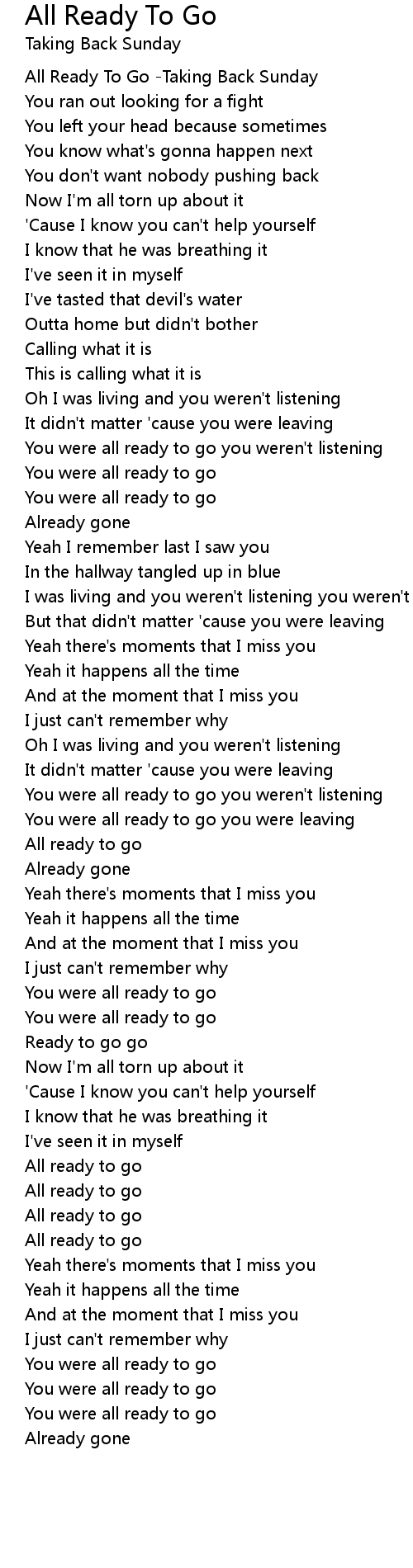 All Ready To Go -Taking Back Sunday |