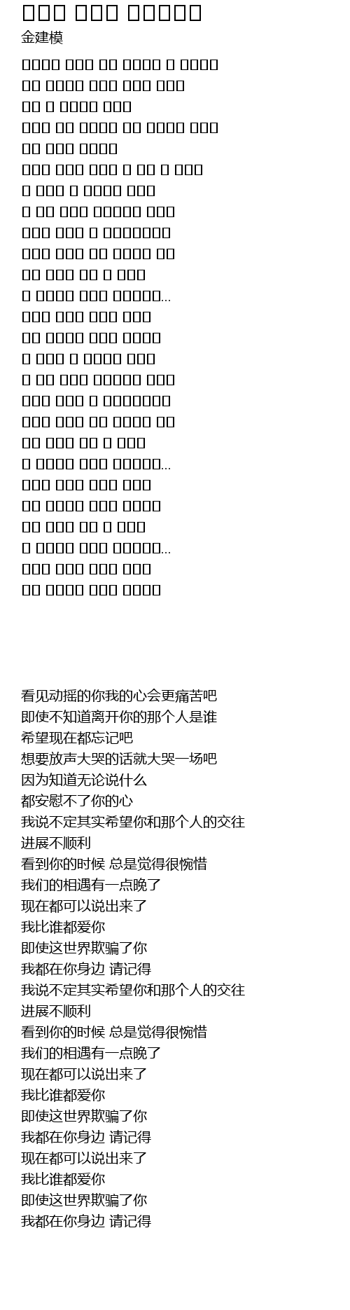 | [00:18.11] | 흔들리는 그대를 보면 내마음이 더 아픈거죠 |