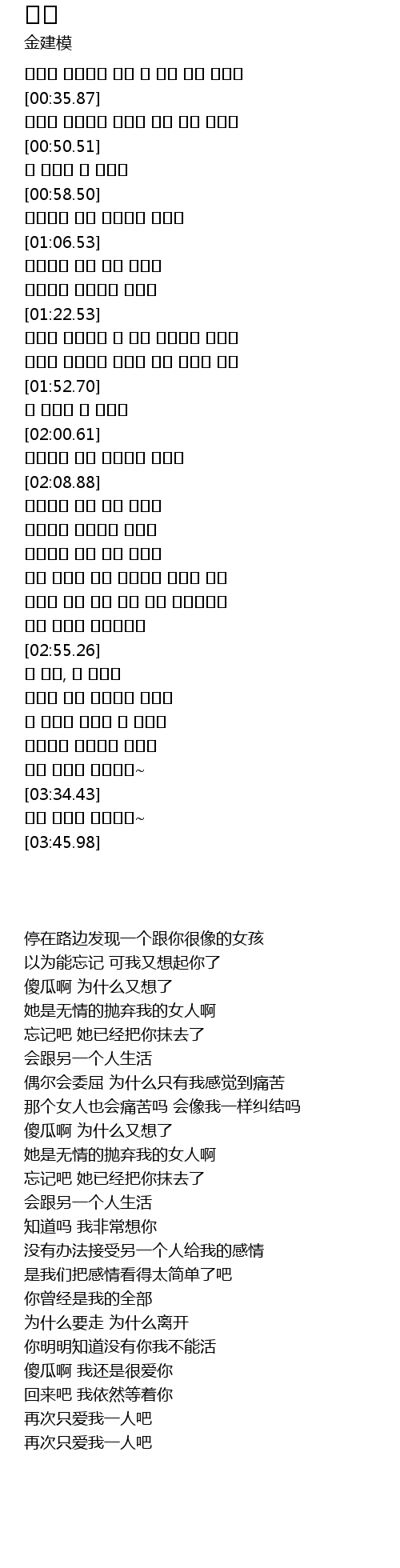 이 바보야 아직도 널 사랑해 |