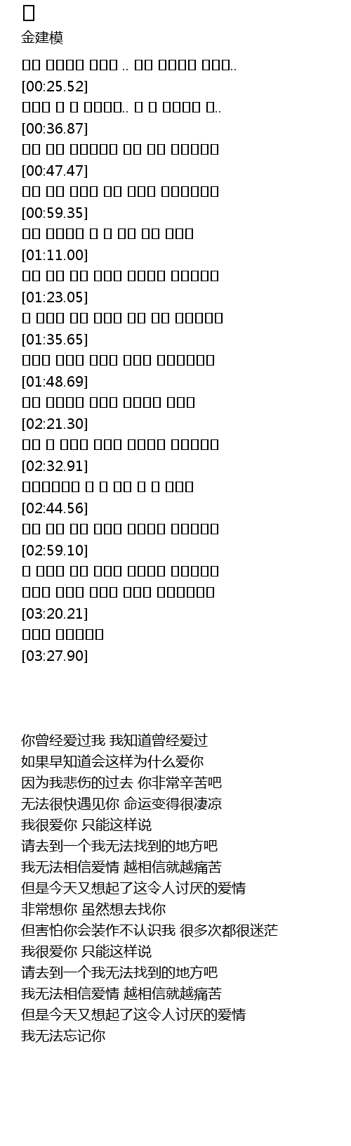 | [03:23.71] | 그대를 못잊겠어요 |