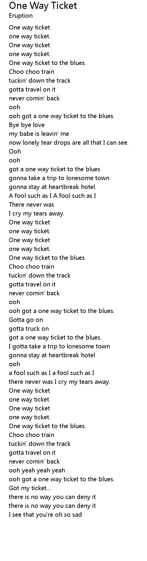 ooh got a one way ticket to the blues. |