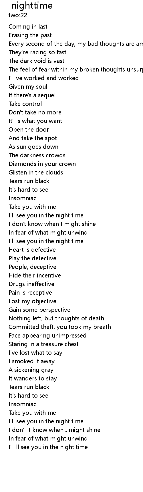 | [02:22.62] | I'll see you in the night time |