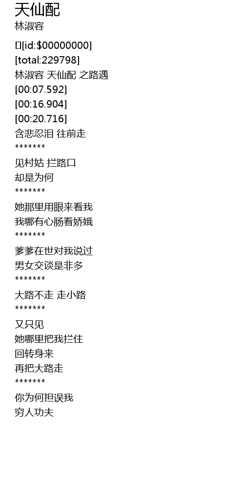 | [00:00.400] | 林淑容 天仙配 之路遇 |