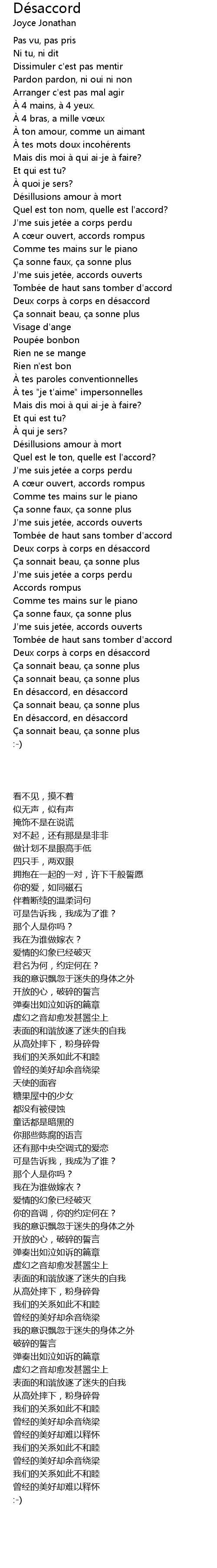 | [01:59.508] | Tombé e de haut sans tomber d' accord |