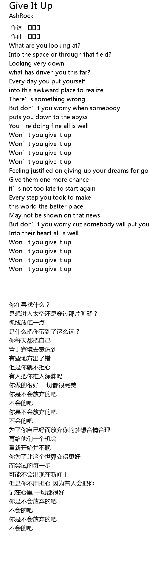 | [01:36.41] | Feeling justified on giving up your dreams for good |