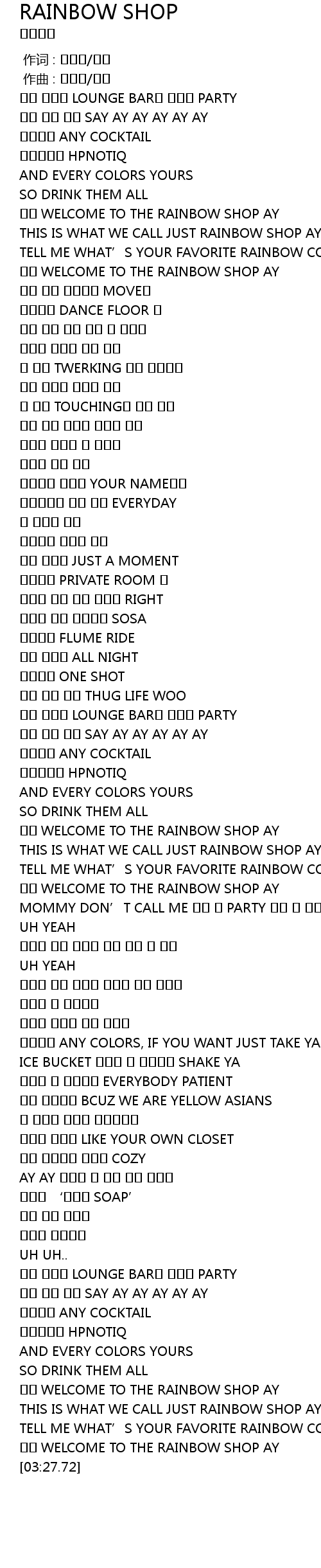 | [03:23.70] | 안녕 WELCOME TO THE RAINBOW SHOP AY |