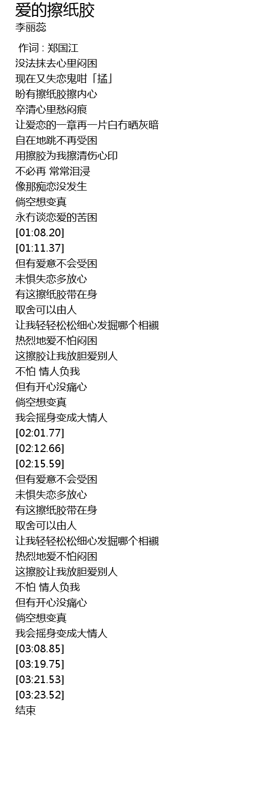 | [00:44.25] | 用擦胶为我擦清伤心印 |