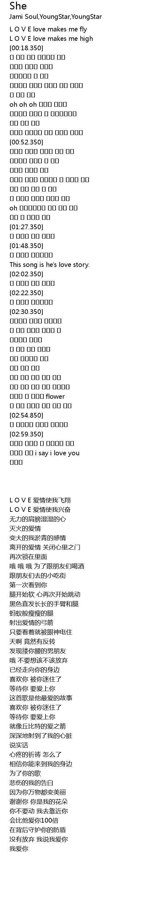 | [00:09.350] | L O V E love makes me fly |