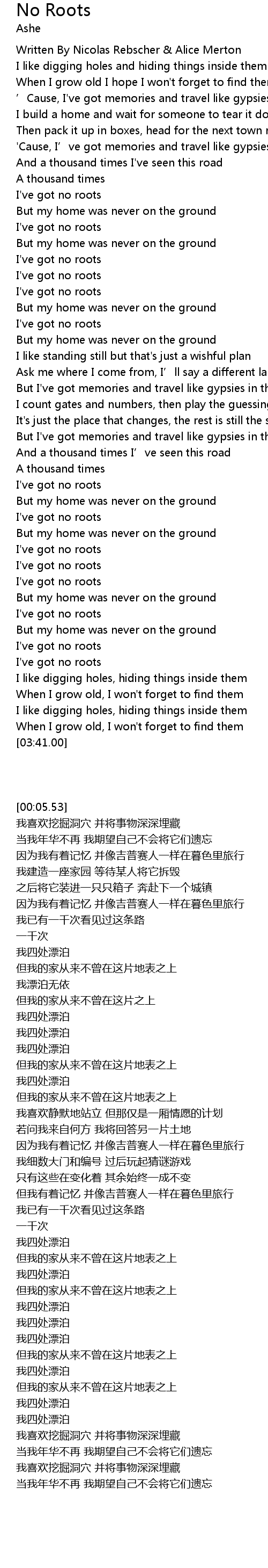 | [01:40.67] | Ask me where I come from, I' ll say a different land |