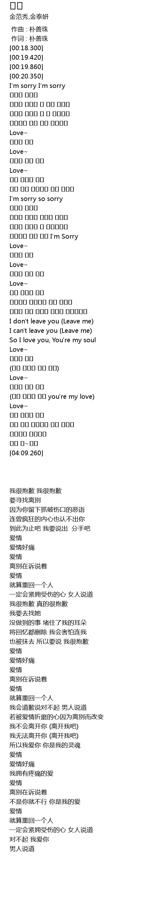 | [02:43.120] | 미안하다 사과한다 남잔 말한다 |