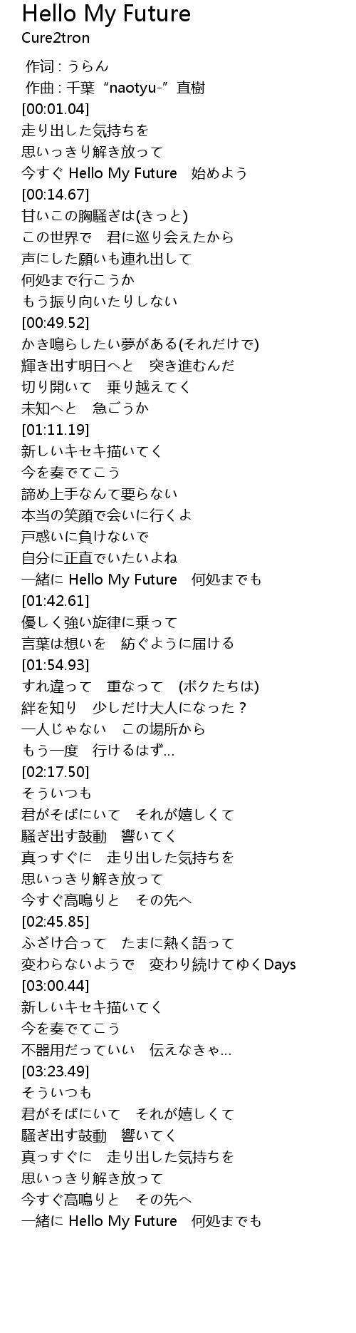 | [01:37.99] | 一緒に Hello My Future 何処までも |