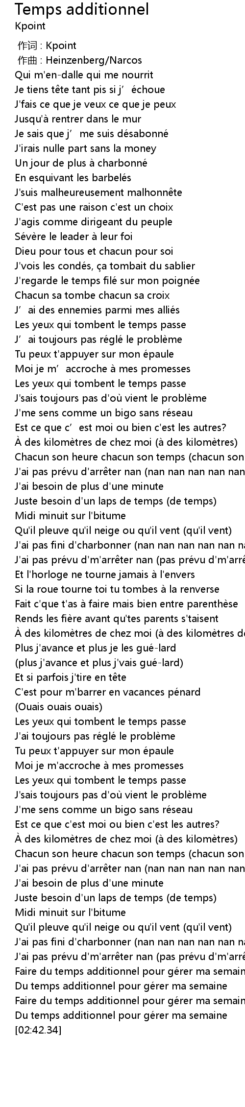 | [02:35.56] | Faire du temps additionnel pour ge rer ma semaine |