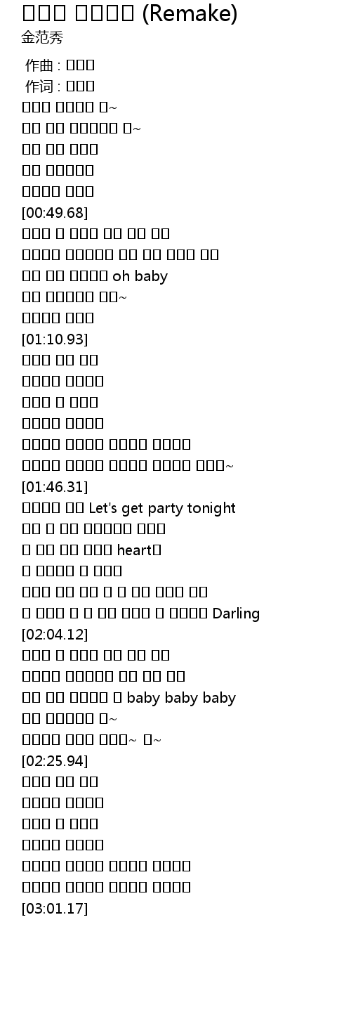 | [02:13.15] | 혹시 맘이 변했을까 아 baby baby baby |