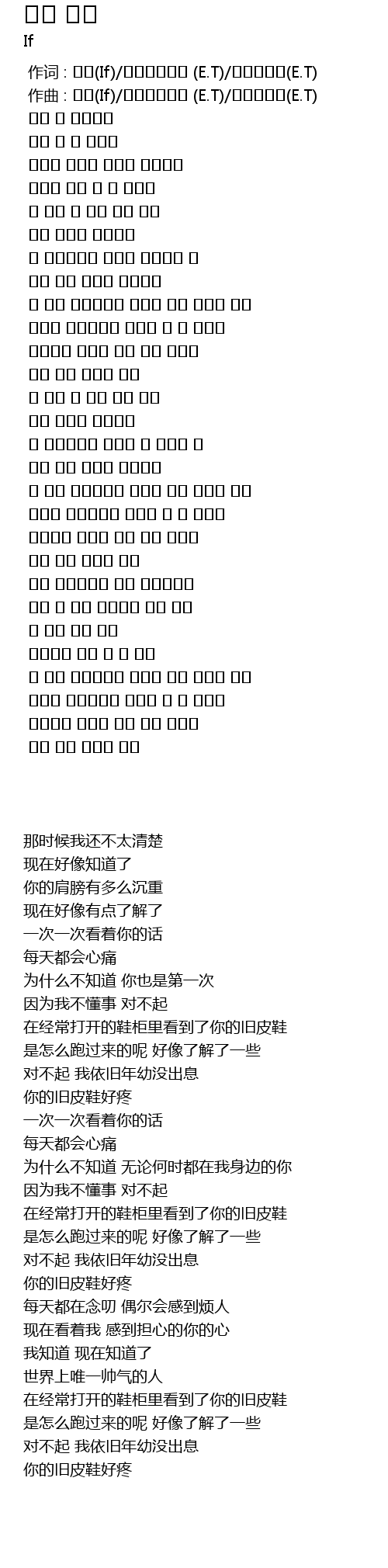 | [00:00.000] | 作词 : 이프(If)/멜로디공작소 (E.T)/노는어린이(E.T) |