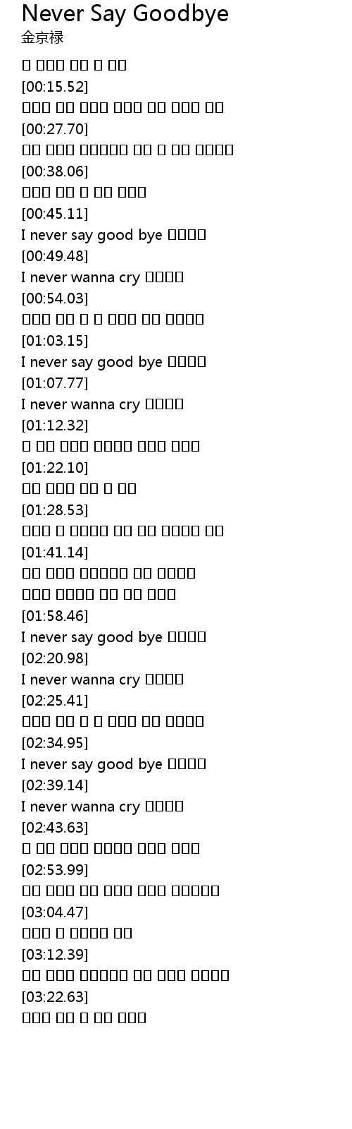 | [02:40.07] | I never wanna cry 사랑해요 |