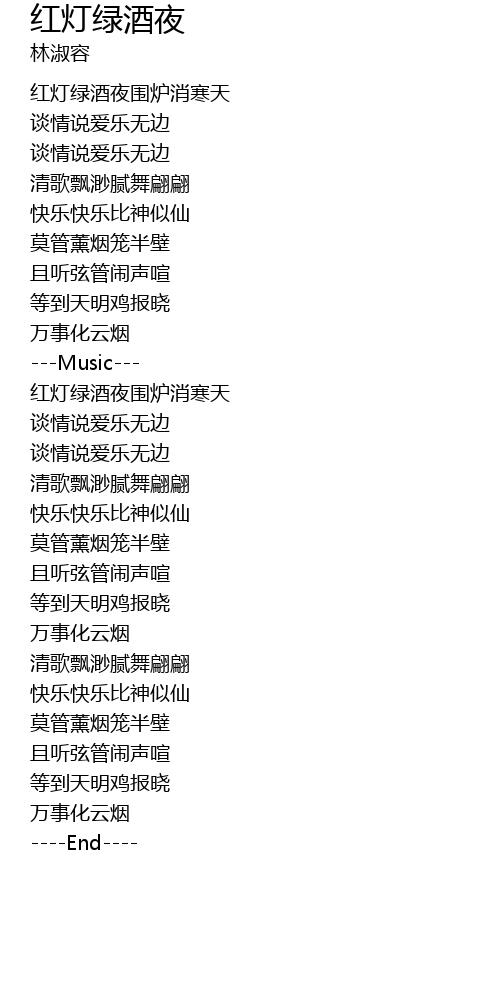 红灯绿酒夜 hong deng lv jiu ye Lyrics