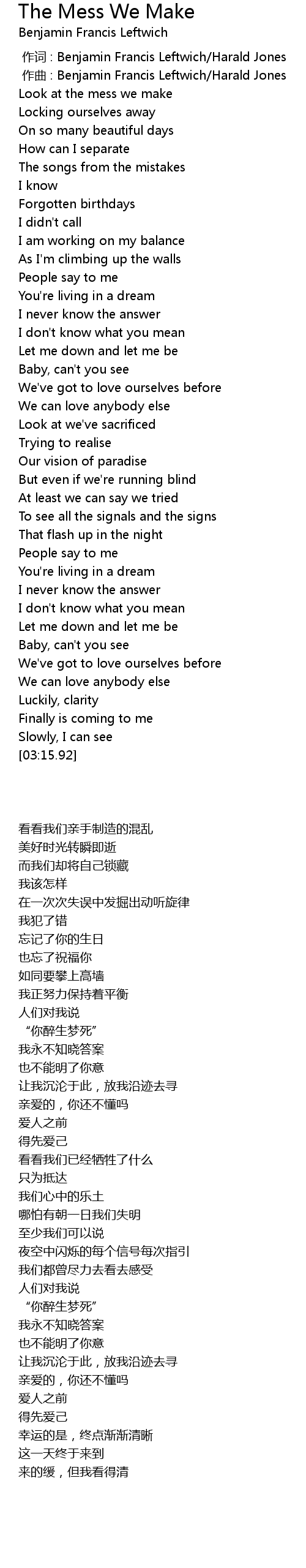 | [00:20.47] | Look at the mess we make |
