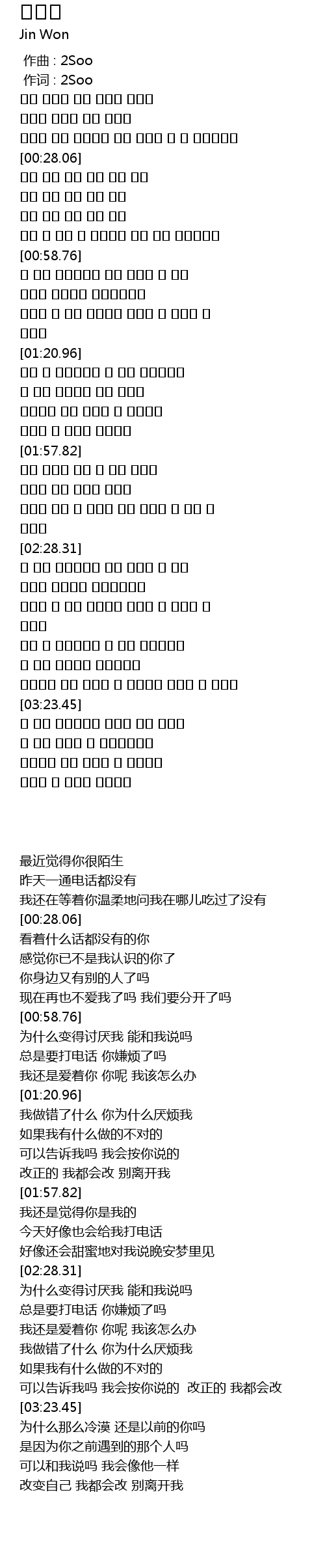 왜 내가 싫어졌는지 내게 말해줄 순 없니 |