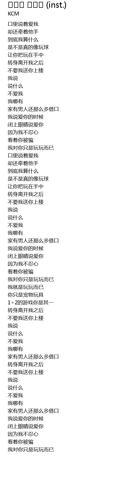 | [01:29.157] | 到底我算什么 |