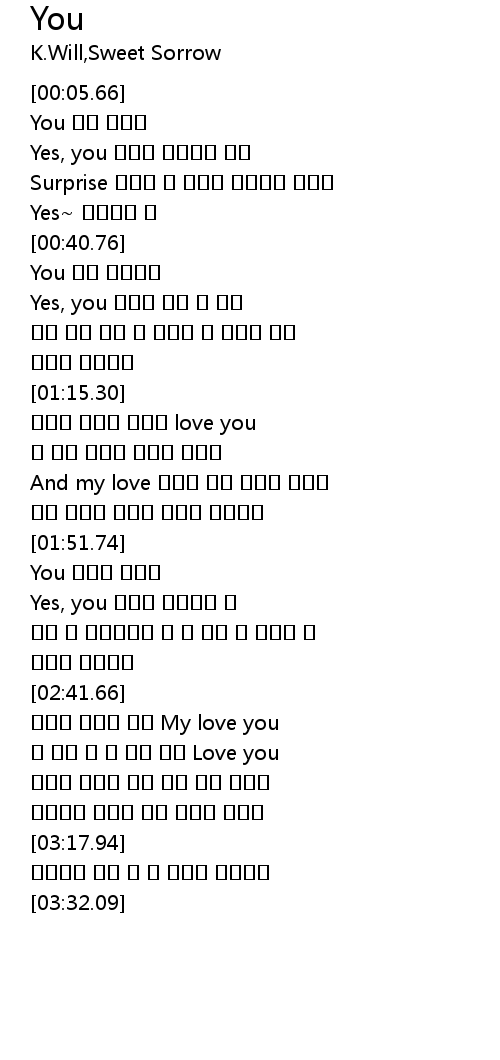 | [00:15.20] | Yes, you 평생을 기다렸던 사람 |