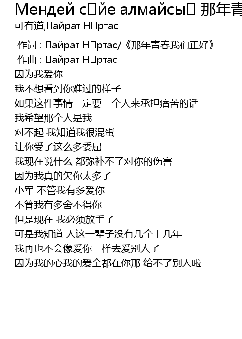 | [00:00.000] | 作词 : Қайрат Нұртас/《那年青春我们正好》 |