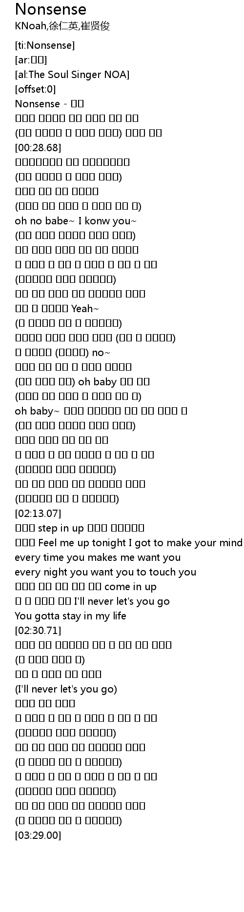 | [00:00.90] | Nonsense - 노아 |