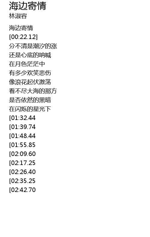 | [04:18.35][02:35.25] | 问它是否能飘过重洋 |