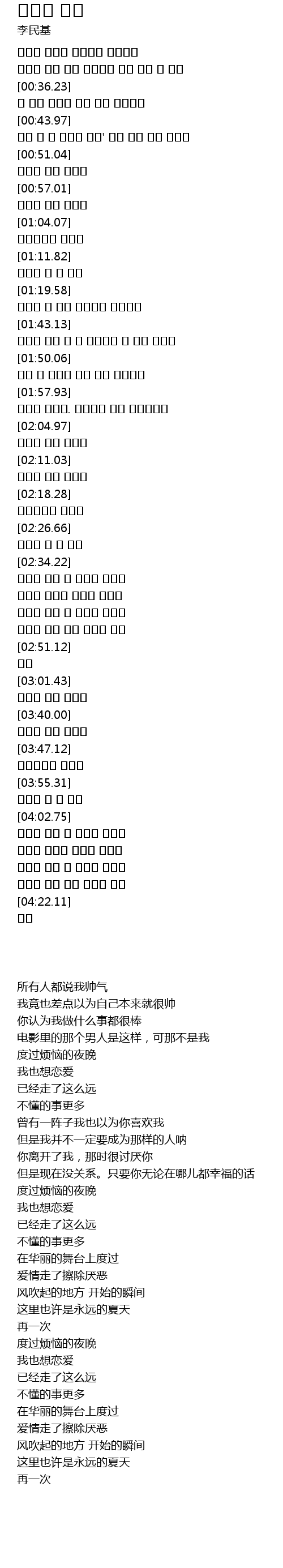 | [01:36.64] | 한때는 나 역시 너와나를 좋아했어 |